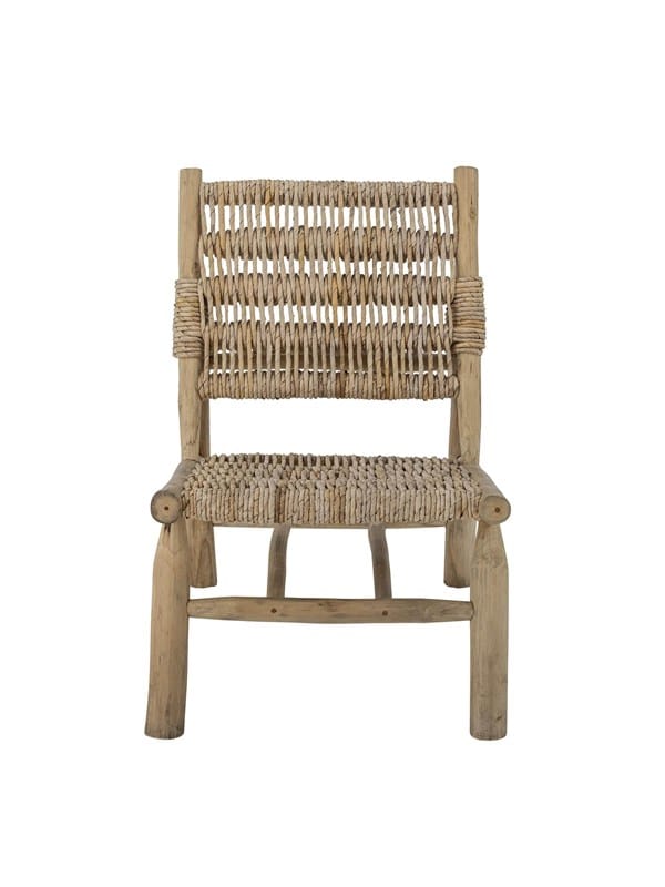 Lounge-stol lavet af rå teakgrene med naturligt snoede bananblade giver et blødt, rustikt udtryk og indbydende komfort, der gør det svært at rejse sig.Ruthy Lounge chair fremviser teaktræ og komposition af bananblade med gennemført detaljering for en natu
