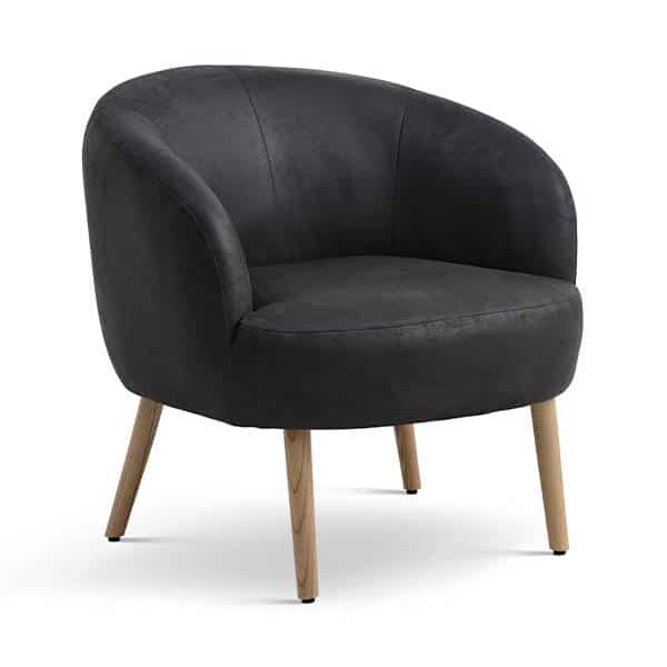 Conrad lounge chair – Onyx black – Læder – Natur træ